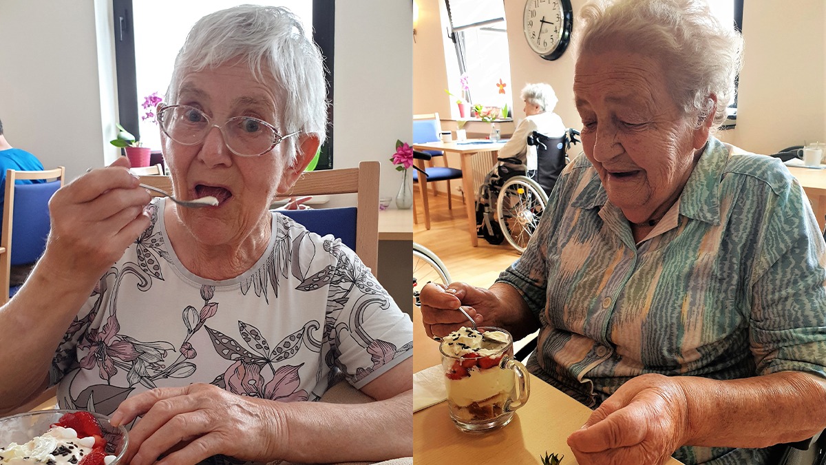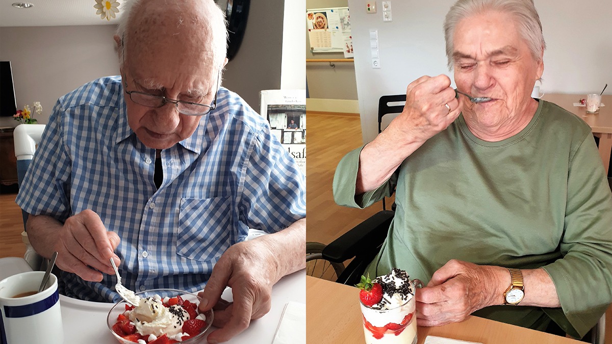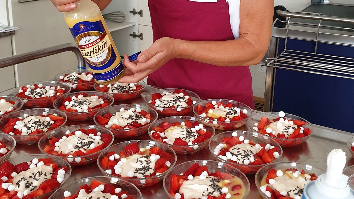 In der Vorwoche gab es bereits einen Erdbeerkuchen. Nun wurden die Erdbeeren mit Meringue und einem Schuss Eierlikör angerichtet. Über beides freuten sich die Bewohner*innen sehr und sind bereits gespannt, ob noch weitere Ideen folgen. Noch hat man im „Haus St. Katharina“ einige Wochen Zeit, weitere Gerichte auszuprobieren. Dann endet die Zeit der Erdbeere leider wieder.