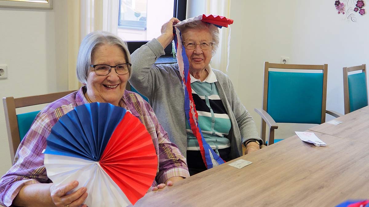 Auch im „Haus St. Katharina“ wurde „Fastnet“ – wie man hier in Endingen sagt – gefeiert. Ganz in den traditionellen Endinger Fasnachts-Farben wurde im Vorfeld die Dekoration gebastelt. Mit viel Vorfreude fieberten die Bewohner*innen der Feier entgegen.