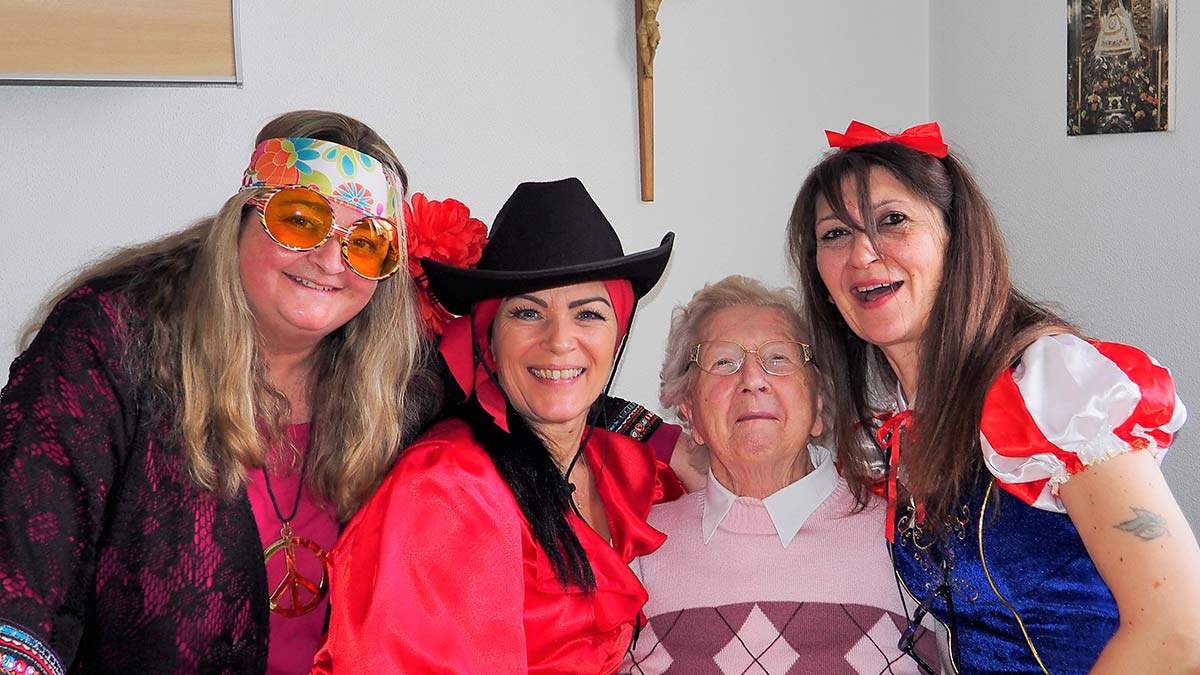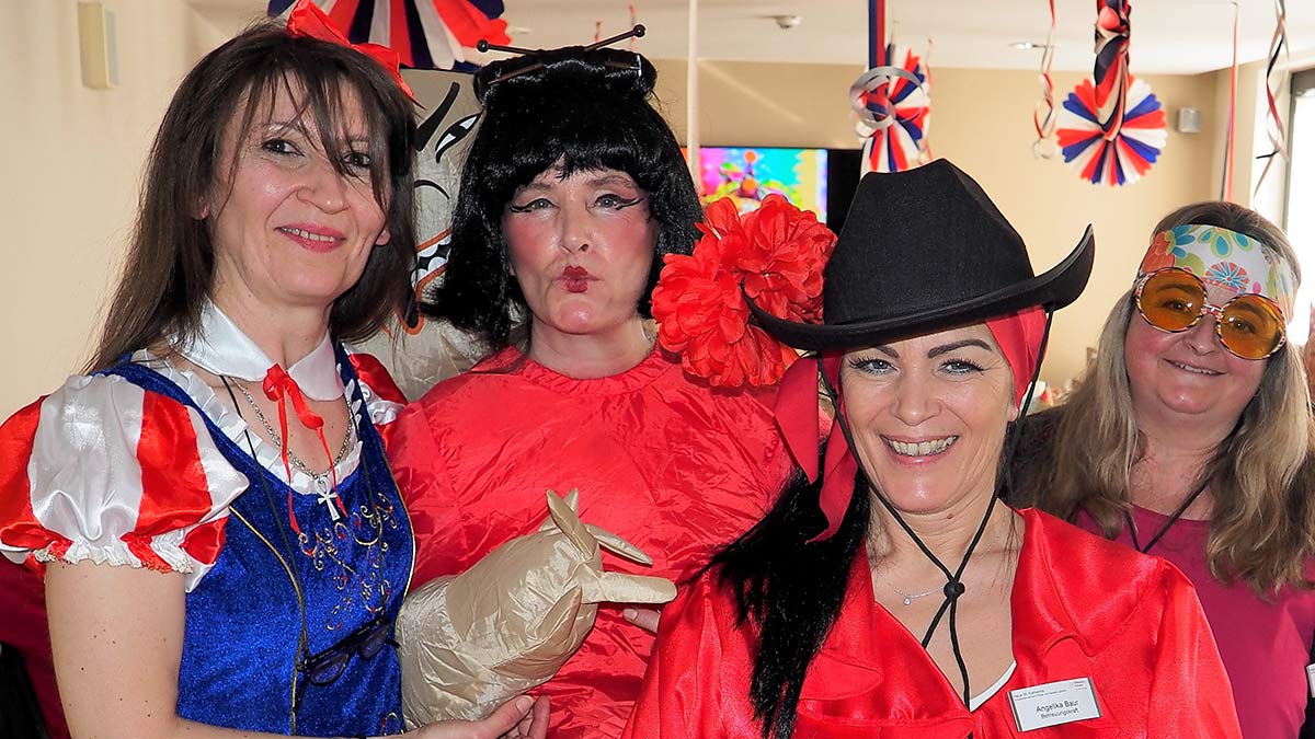 Am Schmutzigen Donnerstag war es dann soweit: die Jokiligruppe, das hauseigene Chörle und eine Tanzgruppe der Bewohner*innen boten ein tolles Partyprogramm und unterhielten die Närrinnen und Narren. Angeheizt wurde die Stimmung auch mit Endinger Fasnachtsliedern. Es wurde gesungen und geschunkelt was das Zeug hielt. „Was wär dia Fasnet ohni Liader? Mir säßä rum wia miadi Briader! S gäb jo kei Grund zum Girgili eelä – was wärä mir fir armi Seelä?!“ ( Übersetzung: „Was wäre die Fasnacht ohne Lieder? Wir säßen rum wie müde Brüder! Es gäbe ja keinen Grund zum Gürgle ölen – was wären wir für arme Seelen?!“)