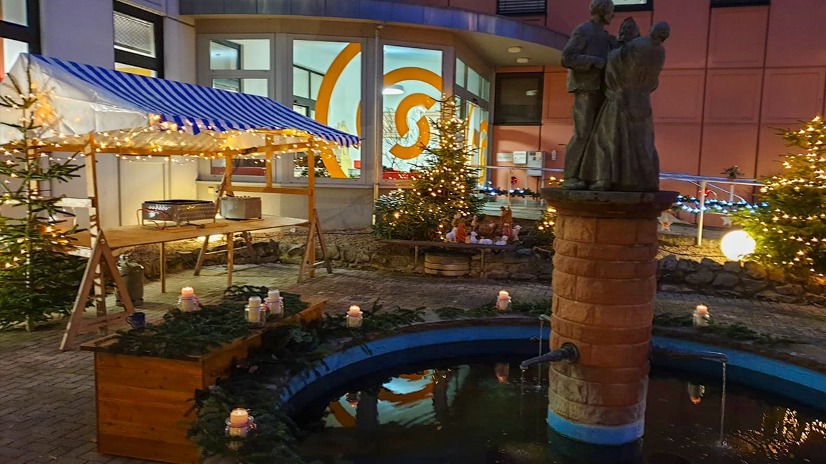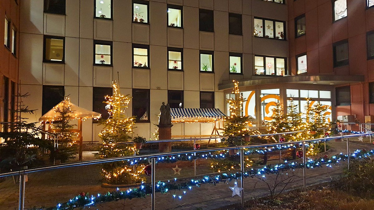 Auch in diesem Jahr mussten wegen Corona viele Weihnachtsmärkte ins Wasser fallen. Doch für die Bewohner*innen des „Haus St. Katharina“ findet ein ganz privater, einrichtungsinterner Weihnachtsmarkt statt. Dazu wurden zwei Marktstände und ein Christbaum aufgebaut. Für die richtige Atmosphäre wurde dann zusätzlich auch an weihnachtlicher Beleuchtung gespart.